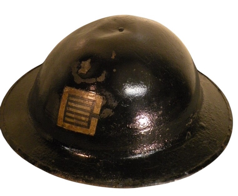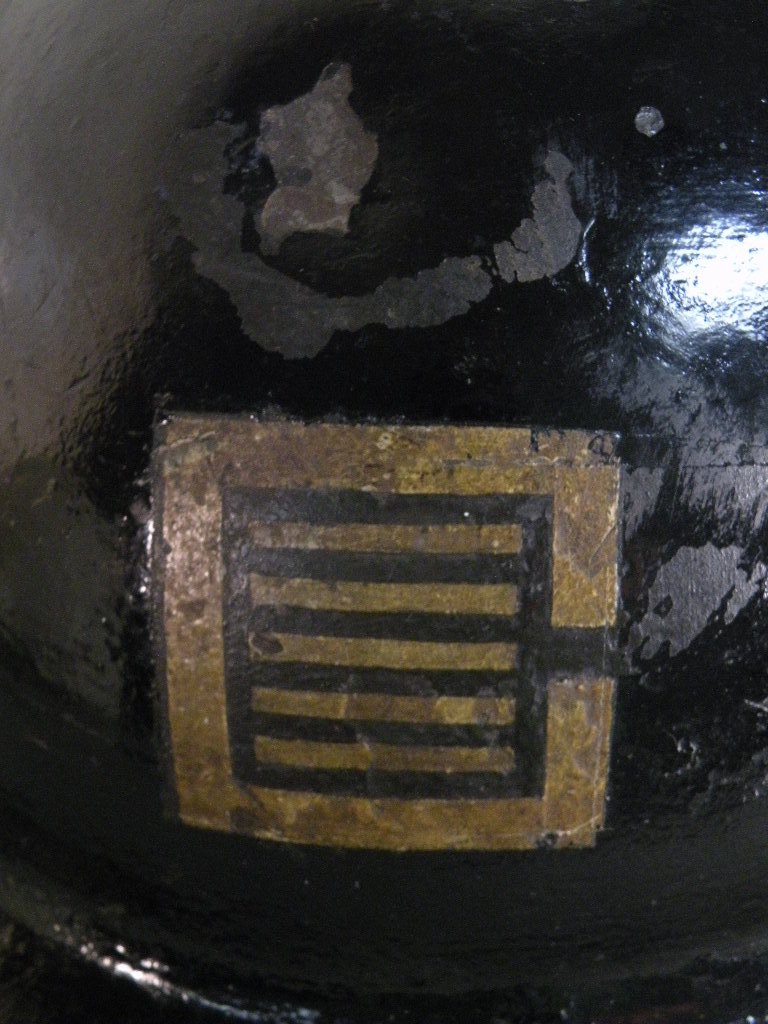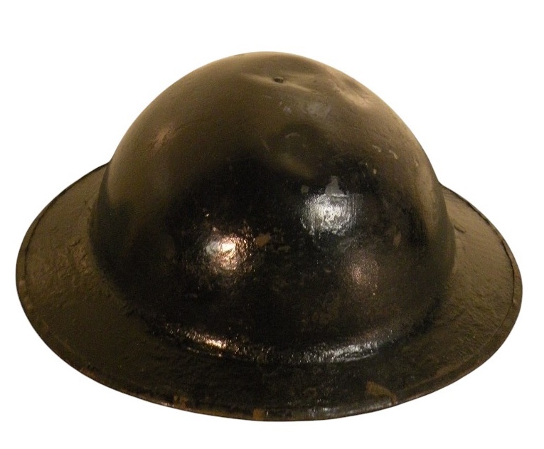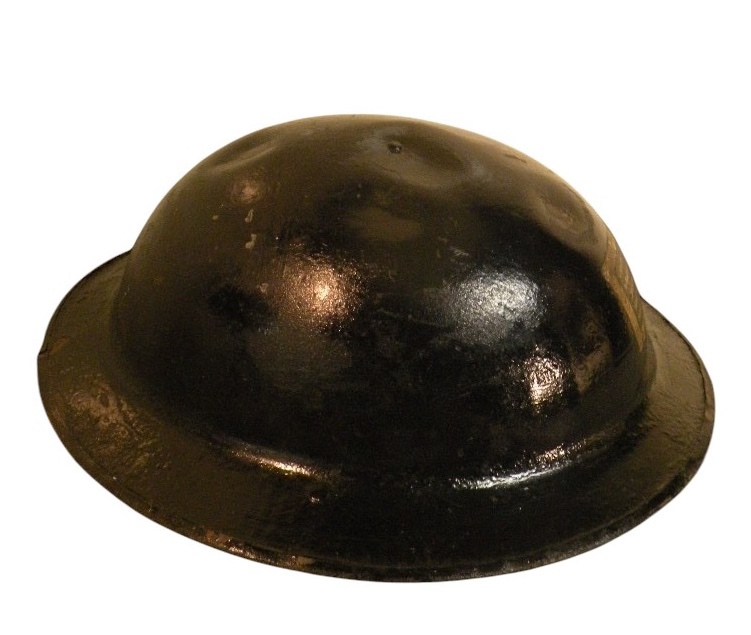 Helmet has been finished in black, possibly for parade use. Lacks liner and strap.