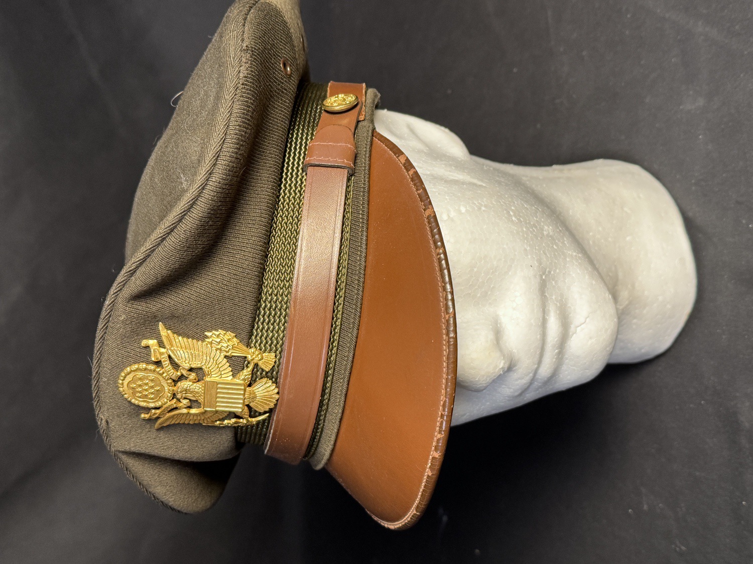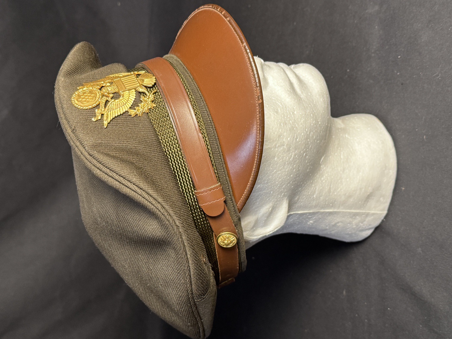 World War II Era US Army Air Corps Officer Service Cap Overseas Cap or Visor Cap, commonly referred to as a crusher cap due to its soft construction. This cap would have been worn by a commissioned officer in the US Army Air Forces AAF.