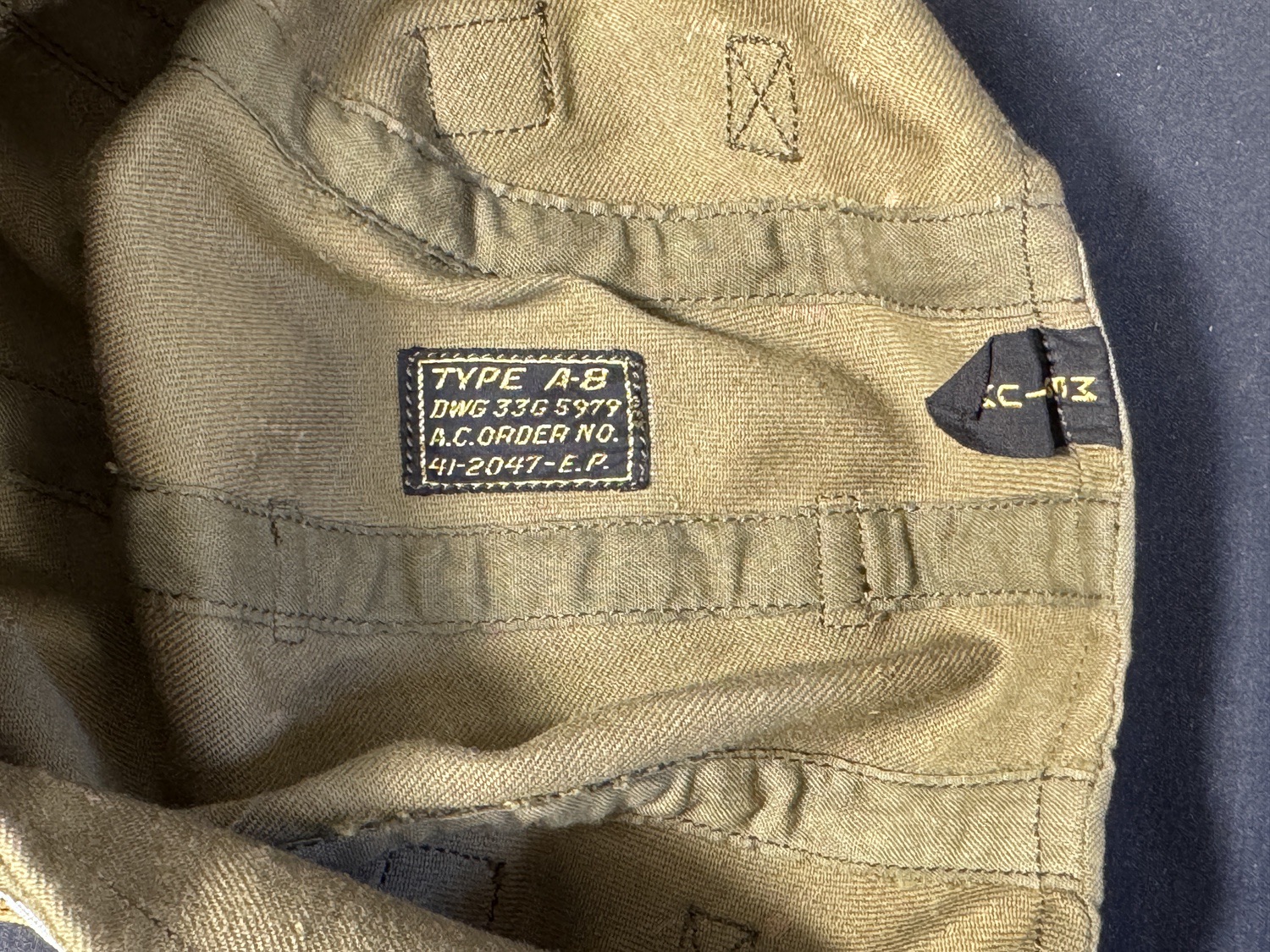 A-8 Cloth Flying Helmet with Leather Chip Cup. Original labels – medium size. Excellent Condition
