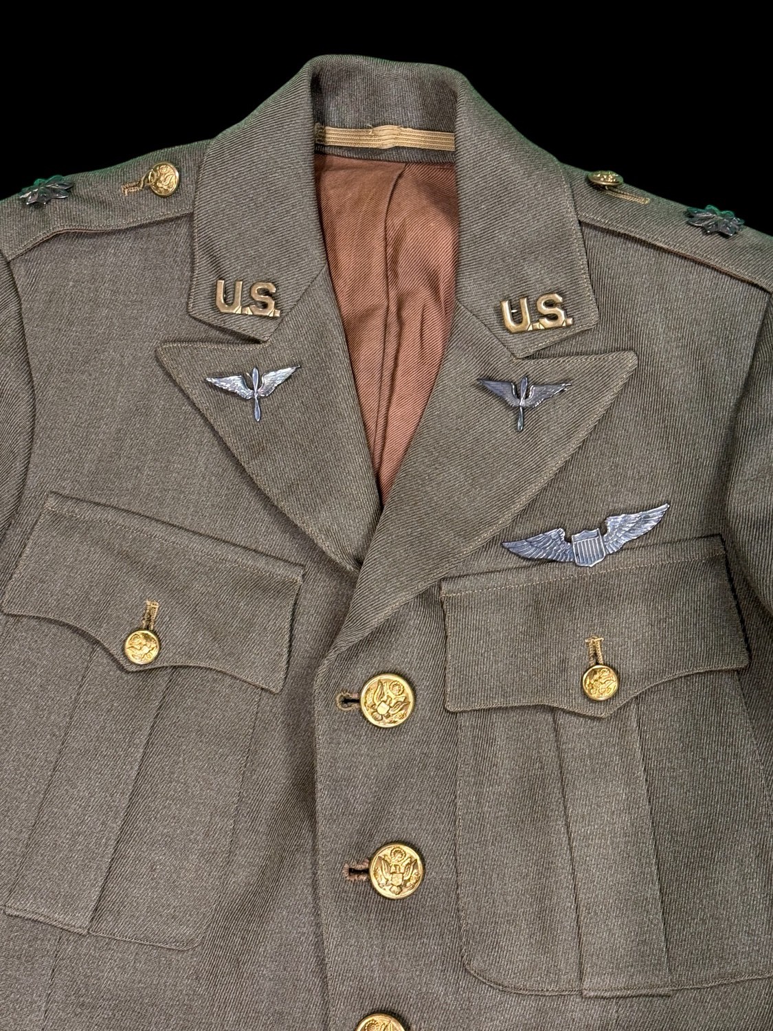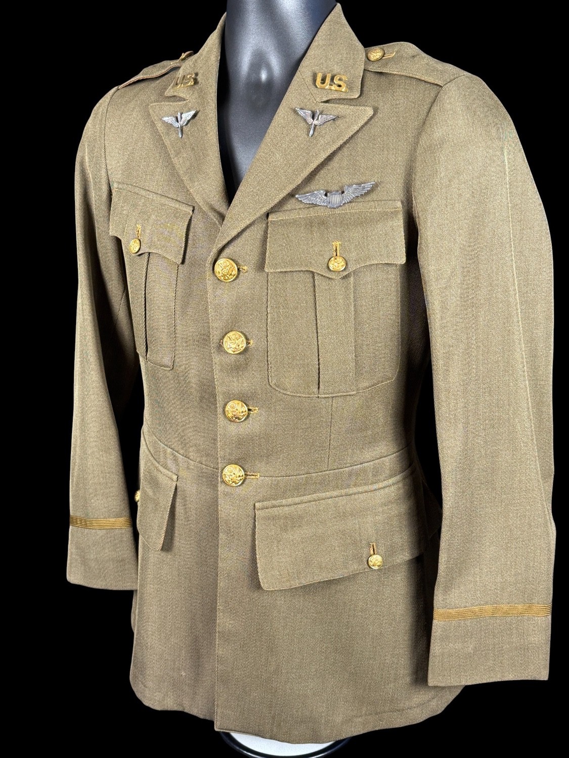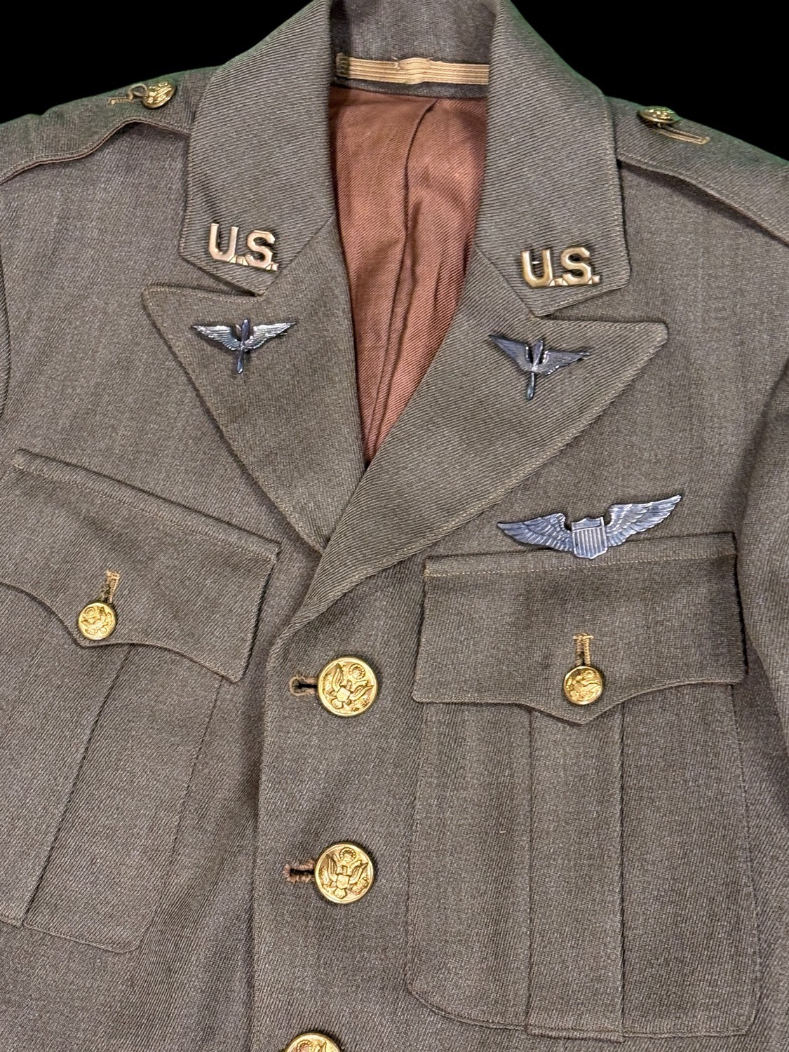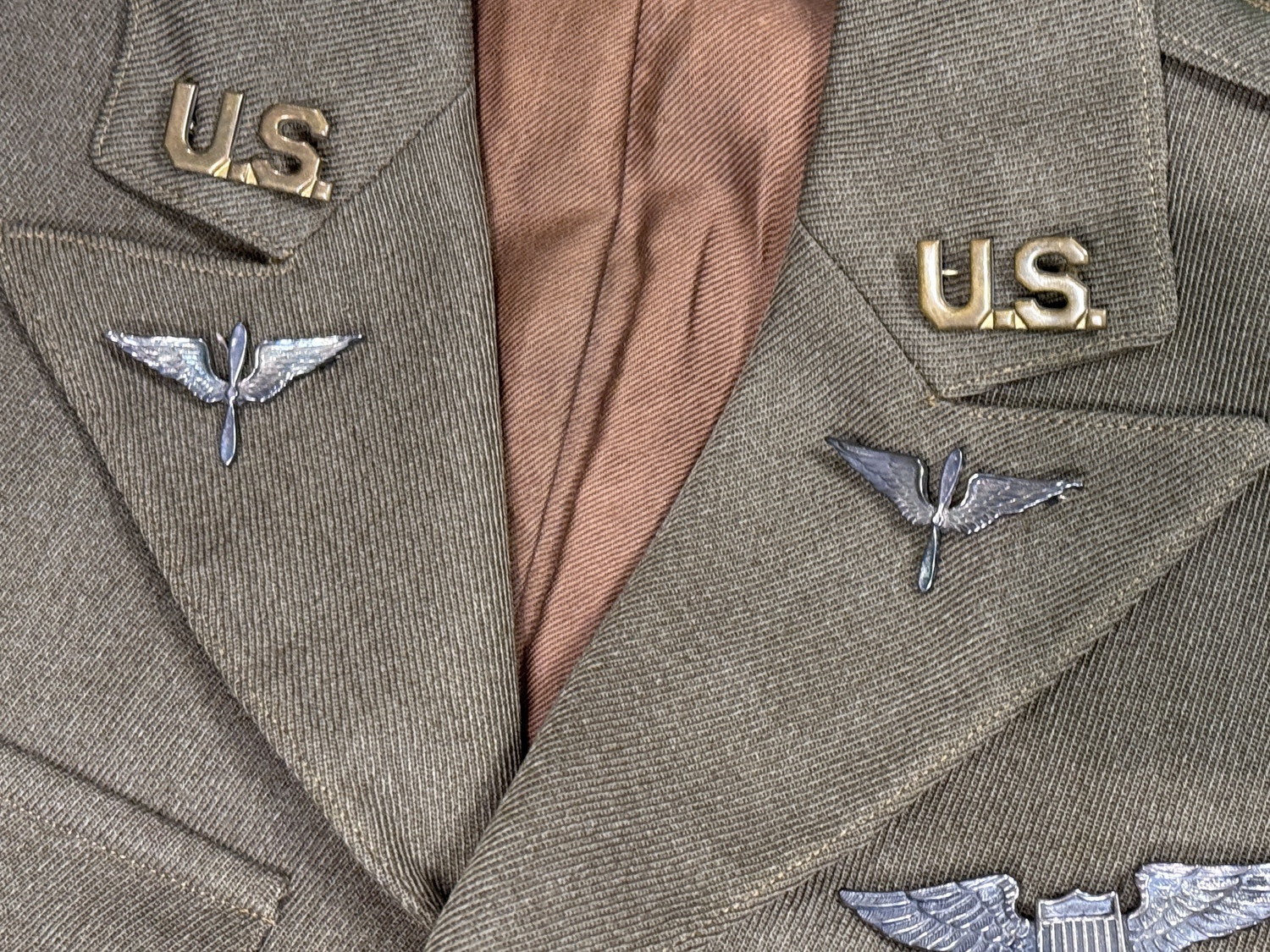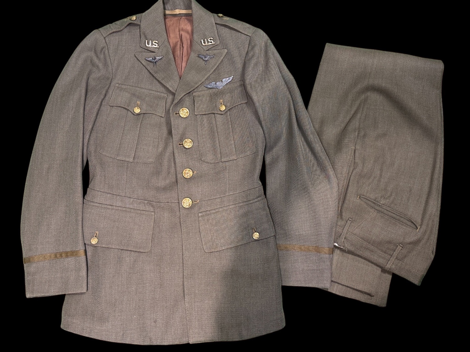 Early pattern PB sterling Wings. Named to C.K. Reger. Has period matching uniform trousers. Complete with large USAS collar insignia. Worthy of further research.