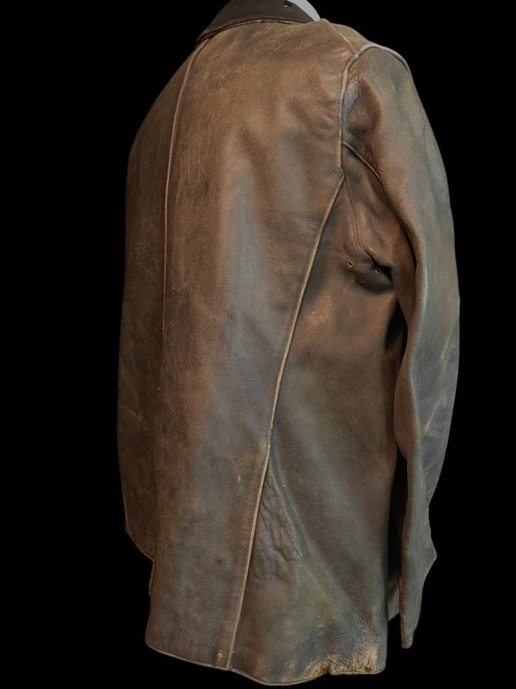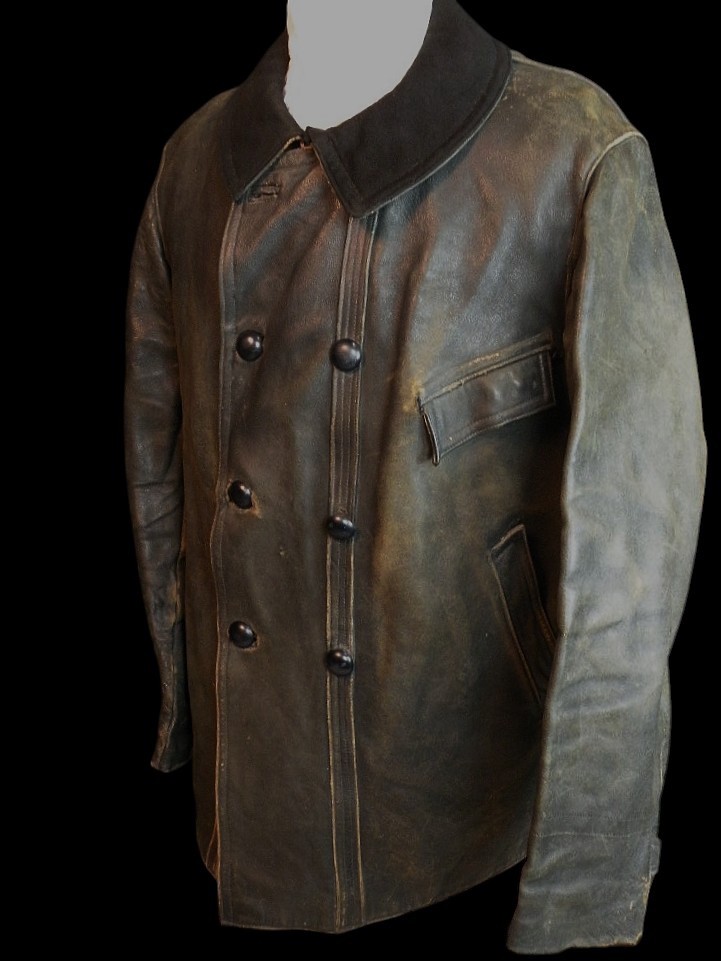 This lot features a rare and historically significant garment: an Original World War I French Aviators Leather Flight Jacket. The French Army Aviation Arm Aronautique Militaire pioneered leather flying gear, and their garments are highly sought after by early aviation collectors.