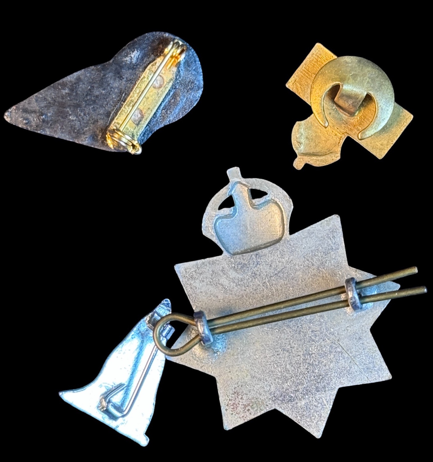 Mixed lot with unusual small bakelite RAF Bomb Aimers sweetheart pin