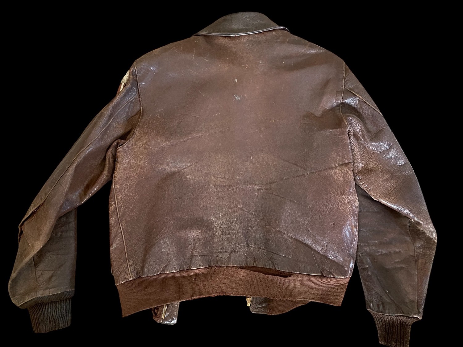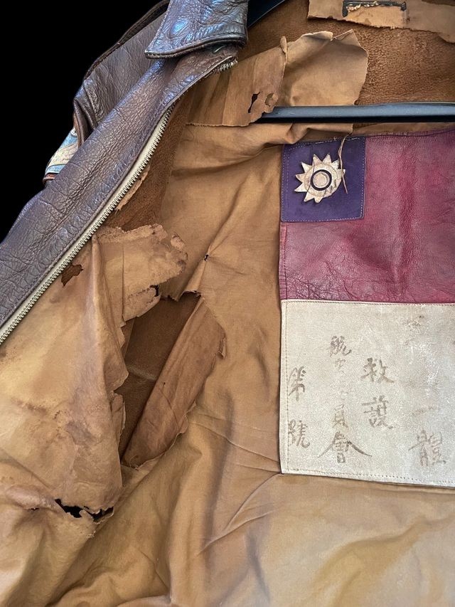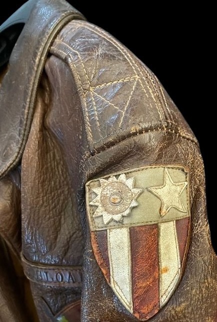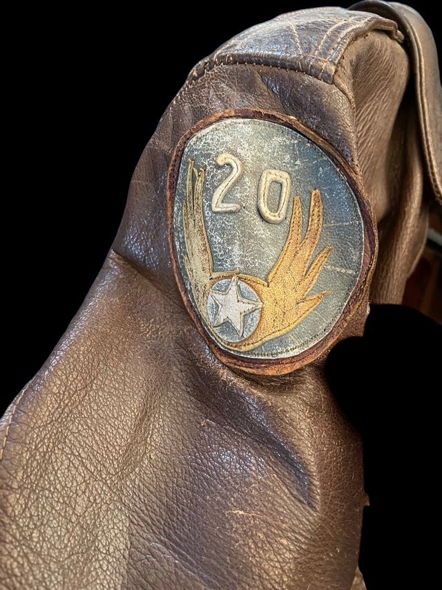 This is an exceptional and historically significant World War II U.S. Army Air Forces USAAF Type A-2 Leather Flight Jacket, directly tied to strategic bombing operations in the China-Burma-India CBI Theater. The jacket s high value stems from its multiple, identifiable patches, the rare leather blood chit, and its documented provenance to a named aviator. The jacket is a classic A-2 flight model, constructed from rich brown leather showing significant, authentic patina and wear. A stitched leather name strip confirms the original wearer as -L. J. SLOAN,- providing traceable provenance. This jacket is heavily personalized with key insignia: on the right shoulder is the rare leather patch of the Twentieth Air Force 20th AF , the B-29 strategic bombing command. The most crucial identifying patch is the locally-made leather insignia stitched to the chest, which represents the 468th Bombardment Group Very Heavy , famously known as -The General Billy Mitchell Group-Ña fact reinforced by the surrounding stenciling -MITCHELL ROAD.- The 468th BG was a pioneering B-29 unit operating out of India and China. Completing the historical context, a large leather Blood Chit is sewn to the interior lining, displaying the Flag of the Republic of China and a plea for aid in Chinese characters, an artifact essential for airmen flying over Japanese-occupied territory. This A-2 jacket is a complete, museum-quality piece documenting a B-29 crewman from one of the most remote and challenging theaters of the war.