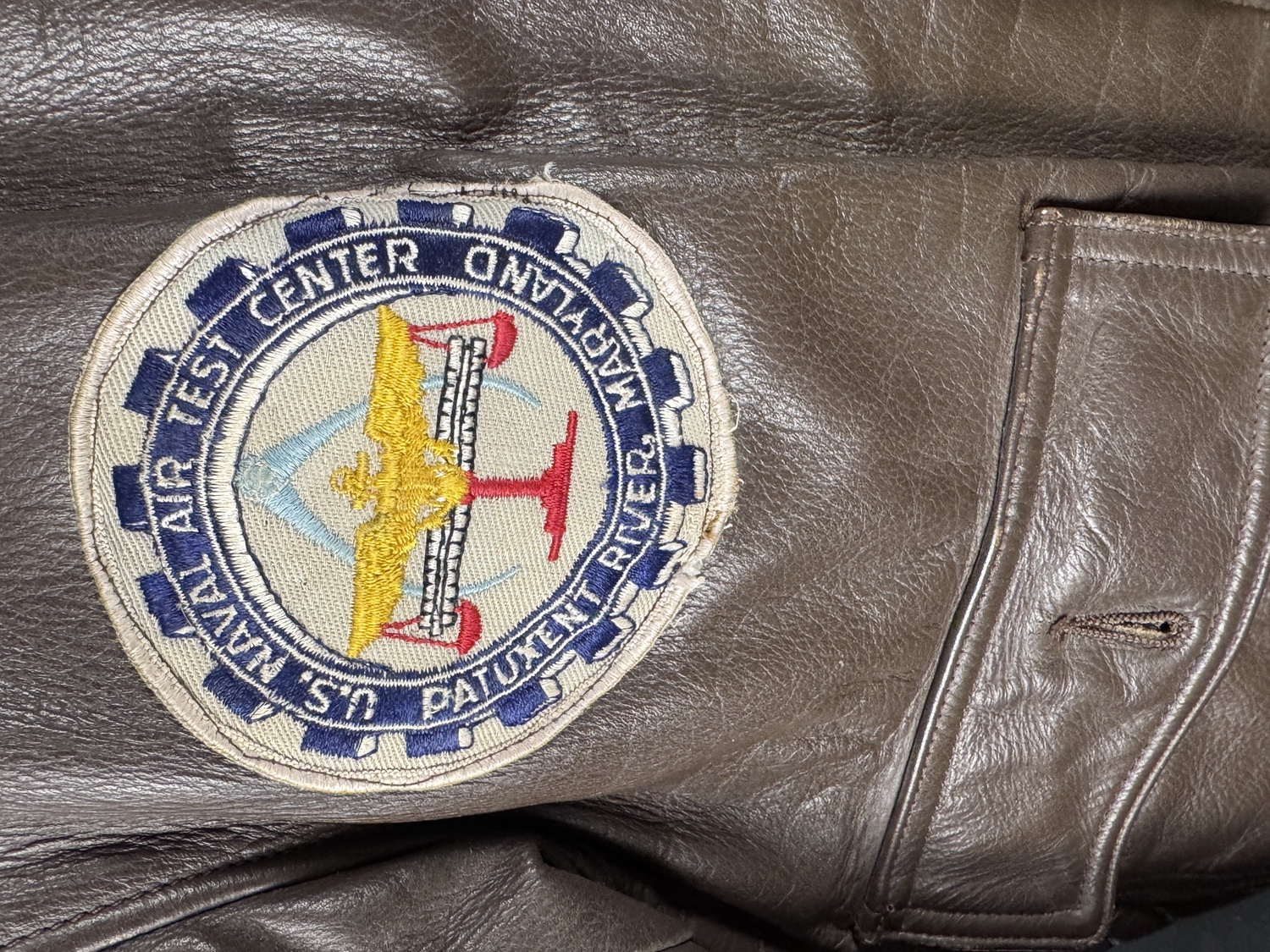 The historical significance of this piece is defined by the large, fully embroidered insignia of the U.S. Naval Air Test Center, Patuxent River, Maryland sewn to the right chest. -Pax River- is the Navy s premier proving ground, home to the U.S. Naval Test Pilot School, where the service s most skilled aviators test the limits of new airframes and systems. The jacket is personalized with a leather name tag embossed -V. S. PETERS Ð USN-. This jacket is attributed to Captain Vaughn S. Peters, a career Naval Aviator and Test Pilot. Captain Peters served as the Director of the Strike Aircraft Test Directorate at Patuxent River and was instrumental in the testing and development of the F/A-18 Hornet and other strike platforms during the late 1970s and 1980s. This jacket represents a tangible link to the -Right Stuff- era of naval aviation development.