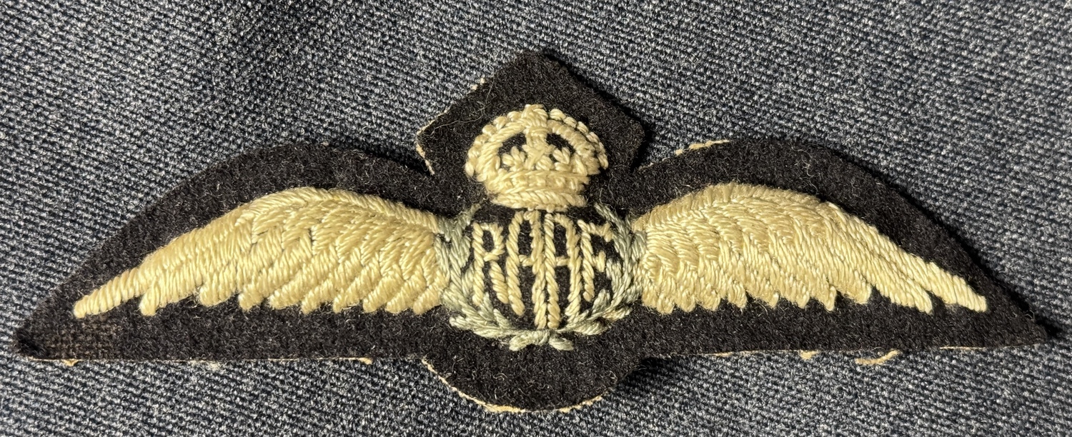 Similar to lot 43. These were for pilots serving with the Royal Australian Air Force during WWII. Padded and hand embroidered.